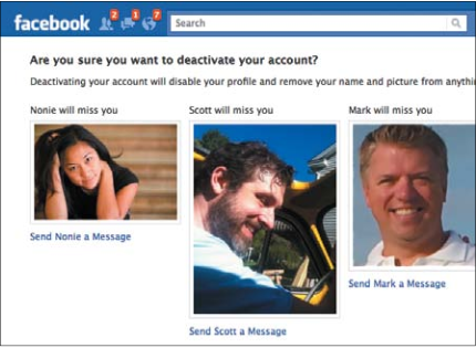 The original Facebook deactivation page was pretty boring. It simply stated: “We’re sorry you’re leaving. tell us why Facebook was not useful.” One of the designers suggested that closing your account be “more like leaving summer camp (you know, a place that has all your friends and you don’t want to leave.)”Inspired by this concept, the design team created a new deactivation page that pulls faces from a few of your friends’ profiles, along with the message that asks, “are you sure you want to deactivate your account? Your 498 friends will no longer be able to keep in touch with you.” has this made a difference? according to Julie Zhuo, design manager at Facebook, this has reduced the deactivation rate by 7 percent. at least a million fewer users have deactivated their accounts!